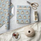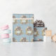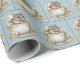 Rato de cinza giro em uma equipe de margarida com pires isolado em um fundo azul macio.