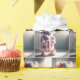 Rato antropomórfico, bonito, fica em iluminação suave vestindo um roupão rosa fofo e pantufas correspondentes adornados com flores
