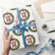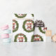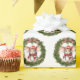 Rato de aquarela bonito com fones de ouvido e cachecol de inverno na coroa de Natal com arco vermelho de gingham e luzes.
