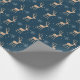 Um papel de embrulho de presente azul de Natal elegante com rena e motif de floco de neve.