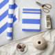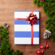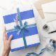 Papel de enrolamento com extensas faixas horizontais em azul e branco reais. A combinação de cores ousadas adiciona elegância e distinção, fazer cada presente parece extraordinário.