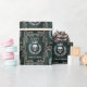 Papel de embrulho verde-luxuoso escuro enfeitado com alivio prateado gótico real apresentando um ameaçador crânio prateado flanqueado por uma coroa de louros reluzente de folhas prateadas e finalmente uma gloriosa coroa prateada brilhando com uma luz pálida brilhante simbolizando uma antiga linhagem real. Perfeito para um Natal ou aniversário com tema real com um toque gótico real. O papel de embrulho perfeito para amantes de tudo o escuro e gótico, arcana, bruxaria e horror macabro.