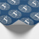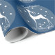 Este bonito papel de embrulho apresenta um padrão de silhuetas brancas de cervo e neve caindo sobre um fundo de duas tonalidades de azul. Clique em Personalizar este Modelo para personalizar facilmente este papel de empacotamento com sua própria saudação, nomes ou outro texto.
