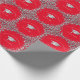 This modern design features a graduation hat and confetti in silver on a background of red with white text.