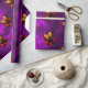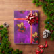 Um embrulho de Natal muito luxuoso, roxo, com um padrão colorido de pequenas bolas de Natal vermelhas, com arcos ouros no topo. Este belo papel de embrulho de Natal vai certamente adicionar um toque elegante e festivo ao seu presente nesta época de férias.