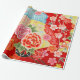 Papel De Presente Red Blue Yellow Japonês Kimono Floral Decoupage