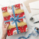 Papel de embrulho de Natal para o Pai Natal, Retro Dourado Vermelho.