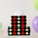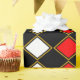 Os diamantes vermelhos destacam este design de harlequin preto e branco ousado perfeito para todas as ocasiões.