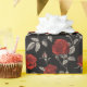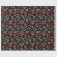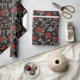 A romantic toile de jouy pattern featuring dramatic, deep red roses on grey vines against a jet black background.