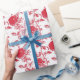 A romantic, vintage toile de jouy pattern featuring bright red roses against a crisp white background.