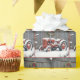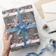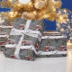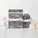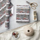 A bright red farm tractor in a blanket of snow, perfectly paired with a festive Christmas wreath on a charming rustic wooden barn, captures the essence of holiday cheer and the beauty of winter