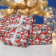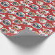 Personalized wrapping paper with five of your photos against a red background with white stars. The photos fit into a round white frame. Simply pick five photos you love for this starry wrapping paper, perhaps of your family or the birthday girl or boy, and upload them to the template.