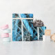 Um design colorido de uma rede de pesca e uma corda azul brilhante de um barco e armazenada no cais do porto.
