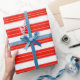 "This vibrant and formal seamless pattern features strong, vertical red columns separated by clean, wide white spaces. The red stripes are elegantly detailed with thin, glittering golden lines and tiny stars, giving the design a luxurious, celebratory feel reminiscent of ribbons or circus tents. This graphic is perfect for high-end holiday gift wrapping paper, large event backdrops or photography backgrounds, decorative ribbons and bows, seasonal home textiles (curtains or tablecloths), or any product aiming to convey classic and festive elegance with striking color contrast."