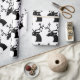 Uma rena de Natal legal e engraçada com Enfeites de natal pendurados nas suas colegas pretas em silhueta preta sobre um fundo branco. Você pode alterar as imagens e a cor de fundo e adicionar seu próprio texto para personalizar este papel de empacotamento para um papel de empacotamento personalizado ou deixá-lo preto e branco para apresentar uma imagem sofisticada.