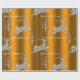 Um papel muito festivo, luxo e embrulho de natal, com um padrão cintilante de rena feito de pequenos diamantes e faíscas (apenas impresso). Existem também árvores de Natal modernas e prateadas e saudações de Feliz Natal, todas num fundo metálico de ouro.