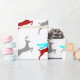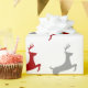 O padrão de rena num vermelho sofisticado (com um cachecol azul) e a cinza parecerá excelente com uma fita estiva verde ou prateada.