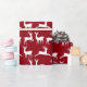 Reindeer Red White Christmas Wrapping Paper e Holiday Gift Wrap com renas com galhadas correndo pelo design. Um design de papel de embrulho de excelente para os feriados de Natal.