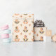 "Repeating floral pattern on wrapping paper, shown unrolled and flat. Cream background with pink roses and green leaves, giving a vintage, elegant feel."