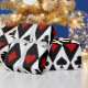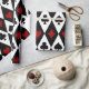 Corações vermelhos e diamantes e paus pretos e espadas sobre um fundo de formas brancas e pretas de diamante. Perfeito para desacoplamento, artesanatos ou embrulhamento de presente. Por favor, verifique o modo de exibição de "costura" para garantir que ele seja aceitável.