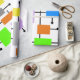 Este papel de embrulho é coberto por uma design moderna do século médio de uma variedade de retângulos retrorreflectores ligados entre si. Colorida e divertida!