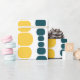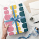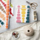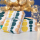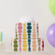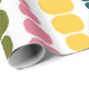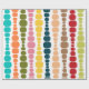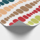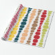 Este papel embrulho tem um design moderno do século médio de linhas verticais de retângulos arredondados em tamanho crescente e decrescente em cores retrorreflectoras de vermelho, verde, azul, amarelo, laranja e marrom em um campo de branco.