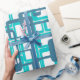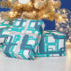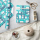 Este papel de embrulho tem uma design moderna do século médio de retângulos abertos em azul sobre retângulos abertos em azul de ovo de robin.