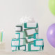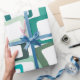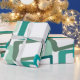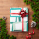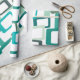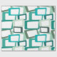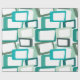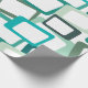 Este papel de embrulho tem uma design moderna do século médio de retângulos mastigados com buracos brancos em tons de azul-esverdeado.