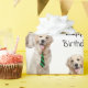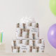 Rastreadores de Ouro giro com colheres listradas e texto de aniversário feliz sobre fundo branco. A cor de fundo pode ser alterada.