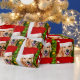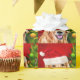 Uma pintura bonita de um cão do Retriever Ouro num lindo Chapéu de Santa com uma árvore de Natal neste presente para o amante do cão nesta temporada de férias.