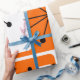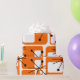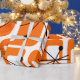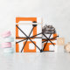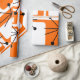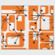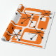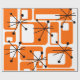 Este papel retrô de embrulho é coberto por quadrados laranja modernos do século médio e estereótipos negros.