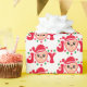 Faça sua alegria de Natal com este papel colorido de embrulho. Tem um fundo de tons vermelhos, verdes e brancos com um padrão de azulejo do Papai Noel caprichoso.