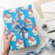 Papel De Presente Retro Azul Papai Noel Encantado no Natal
