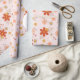 Este papel de embrulho retroativo dos anos 70 tem flores entalhadas em tons rosados e neutros, fazer perfeito para festas de aniversário com temas retrorados.