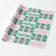 Papel De Presente Retrô do século médio Feliz Natal Rosa Verde