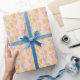 Papel De Presente Retro dos anos 70 Pastel Art Pink e Orange Blooms