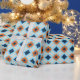 Diamonds and other geometric shapes in black, shades of blue, orange, and tan on a light blue background give this wrapping paper a retro vibe. has a masculine look, and is perfect for Father's Day or all-occasion gifts for him.