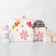 Esse é um padrão de bonitinho de boneco de neve vestindo suéteres cobertos em flores da década de 70 com pequenos flocos de neve. É papel de embrulho de presente de excelente para suas festas de Natal