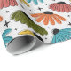 Retro-inspired pattern of bright flowers in blue, green, yellow, red, and orange with vintage mid-century modern halftone and star details.