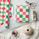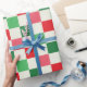 A vintage red, pink, green and cream grid patterned bright retro holiday gift wrap.