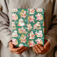 Papel De Presente Retro Nostálgico Papai Noel Natal em Verde