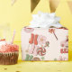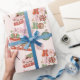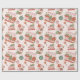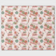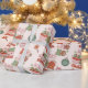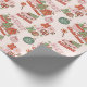 A lively pink, green, and red 70's retro pattern with the joys of Christmas, including ornaments, presents, and pine trees,