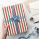 Papel De Presente Retro Red Green White Christmas Stripe Pattern