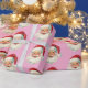 Papel De Presente Retro Santa Face Christmas Pink