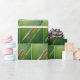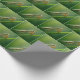 Uma visão de perto mostra um louva-deus orando empoleirado em uma folha verde de grama, destacando seus detalhes complexos e sua camuflagem natural