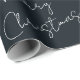Papel de embalagem moderno e de cor clara. Um moderno negro boêmico rico com Feliz Natal em letra manuscrita impressa em um padrão repetitivo. Rich Black Merry Christmas Wrapping Paper.