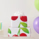 Um par de cerejas vermelhas brilhantes maduras. Este design parece realmente eficaz nestes papéis de enrolamento
