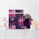 Um robot bonito embrulhando papel com um padrão criado de um rabisco digital de um pequeno robô divertido com uma cabeça de saco de papel em cores rosa e roxo.