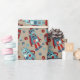 Ilustrações de robôs visuais bonitos em tons de vermelho e azul junto com alguns loucos coordenadores são colocadas sobre um fundo brando neste papel embrulhado padronizado. Adicione um toque retrô de ficção científica a qualquer presente.