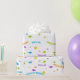 Vamos! O muro de subida com porcas coloridas está em textura de aquarela divertida. O texto diz "Rock On" com espaço para a aniversariante ou a mensagem do menino abaixo. Papel de embrulho perfeito para uma festa de aniversário temática sobre escalada de rocha/
